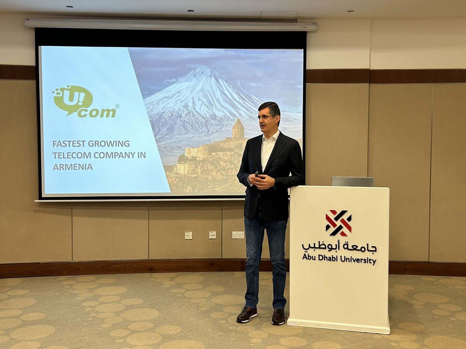 Ralph Yirikian, directeur général de l'opérateur national de télécommunications Ucom, a présenté une conférence sur le leadership au College of Business de l'université d'Abu Dhabi. Le leader éminent du secteur des télécommunications a partagé sa vaste expérience avec des diplômés des universités de Harvard, Oxford et Cambridge résidant aux Émirats arabes unis, à l'invitation de la Leadership School Armenia.