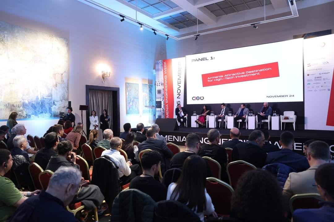 The President of the CCI France Armenia had the honour of speaking on the first panel of the opening day of Engineering Week, alongside Her Excellency Nilakshi Saha Sinha, Indian Ambassador to Armenia, the Economic and Political Attaché of the Swedish Embassy in Armenia, Davit Dilanyan, and the Director of Accenture Research, Armen Ovanessoff.